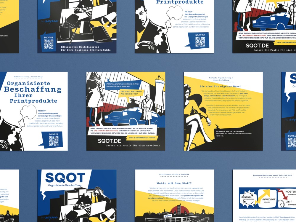 Für unseren Kunden SQOT haben wir nicht nur ein lebhaftes Corporate Design entwickelt, sondern auch eine Webseite im charmanten Comic-Stil gestaltet. SQOT, alias Sepio's quick Ordertool, revolutioniert die Welt der Drucksachenbestellungen mit einer Prise Humor und einer Prise Einfachheit.